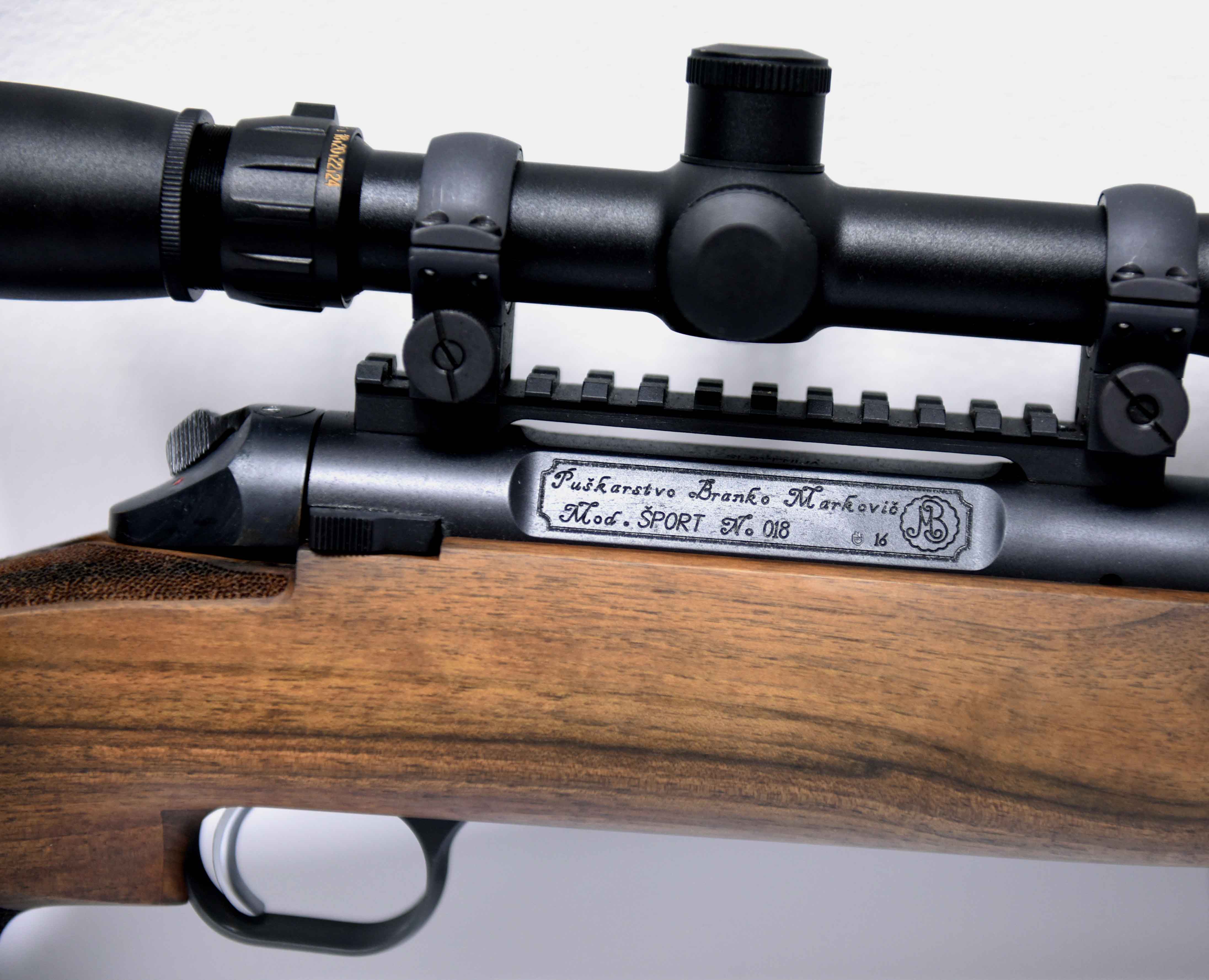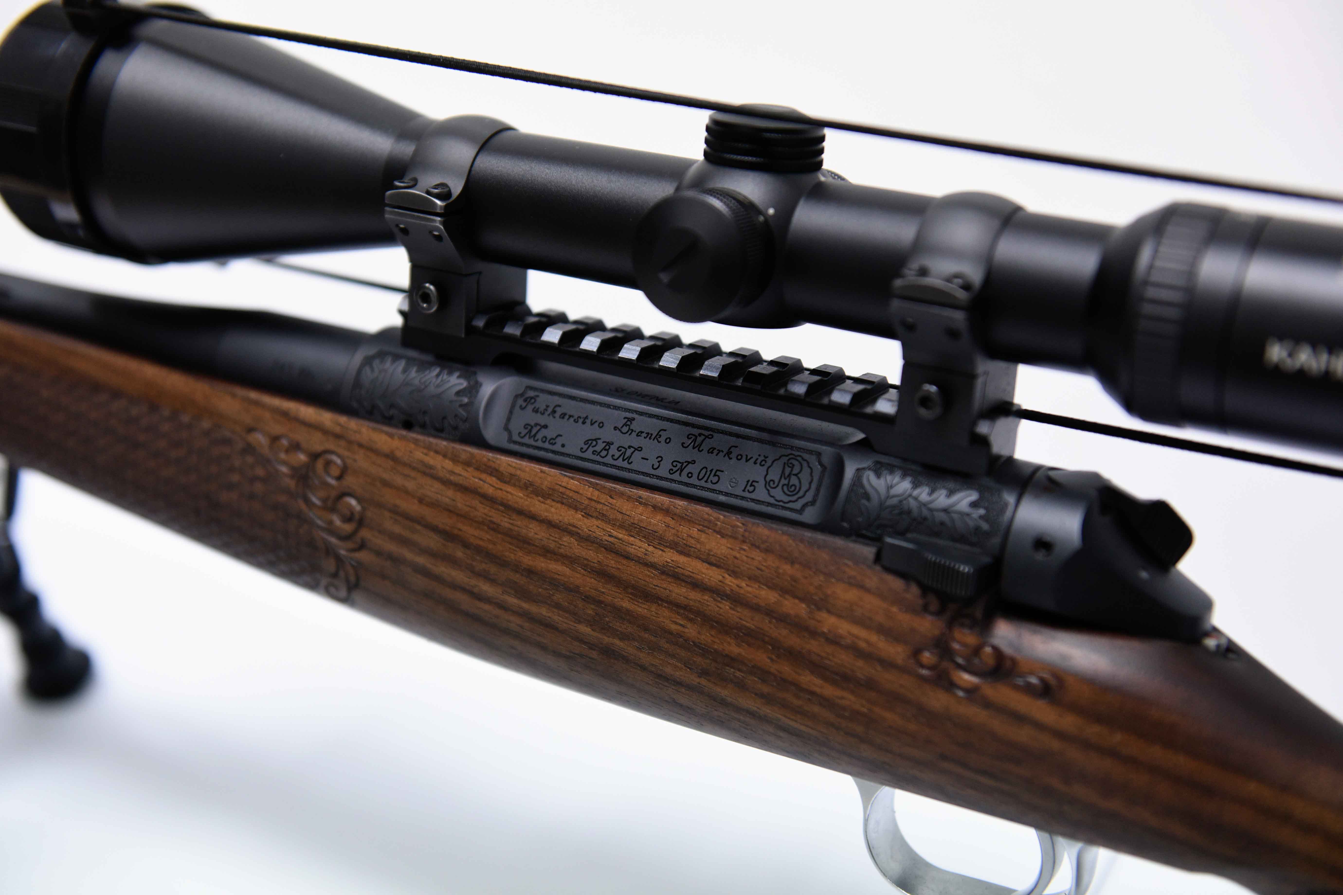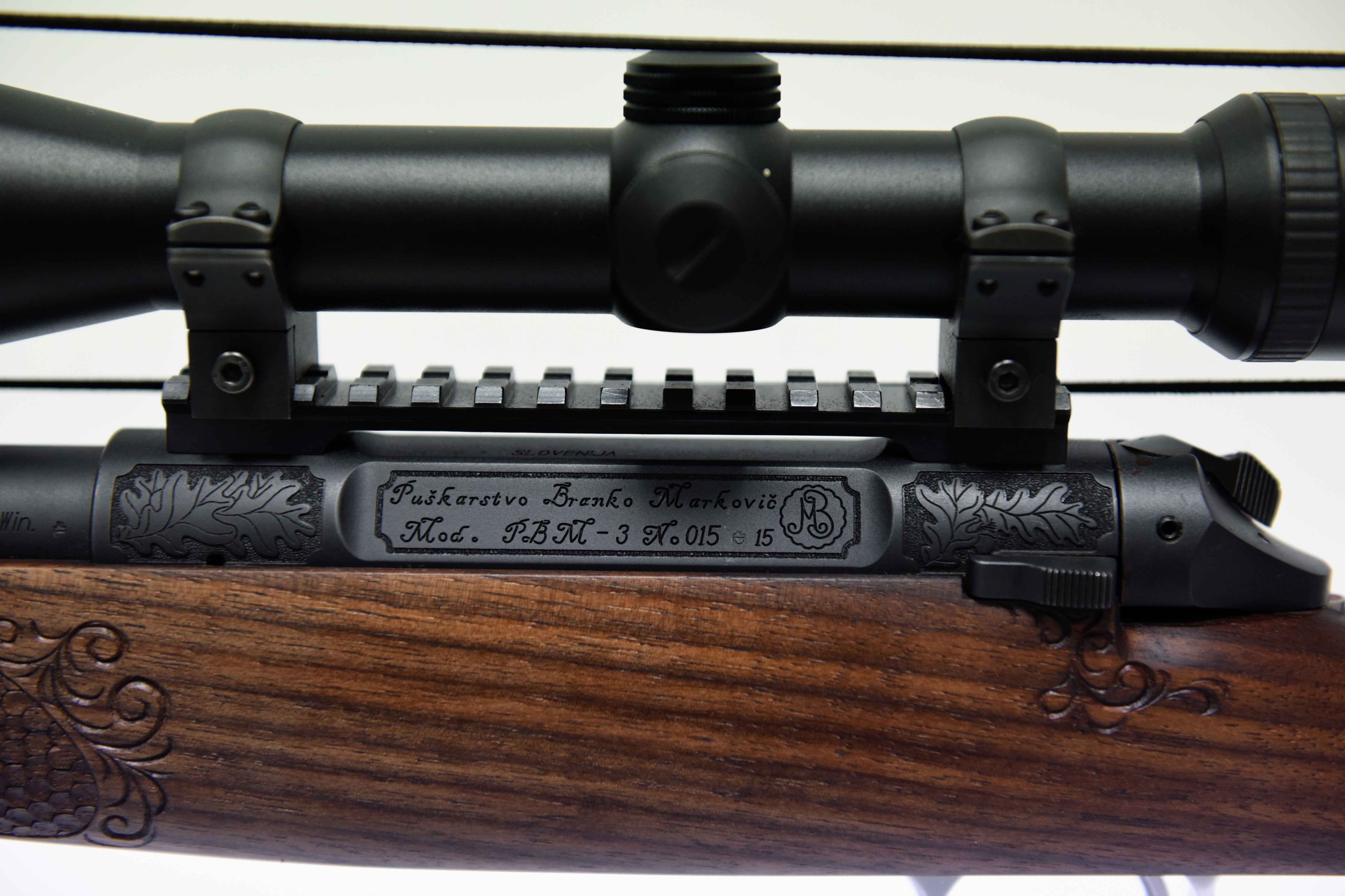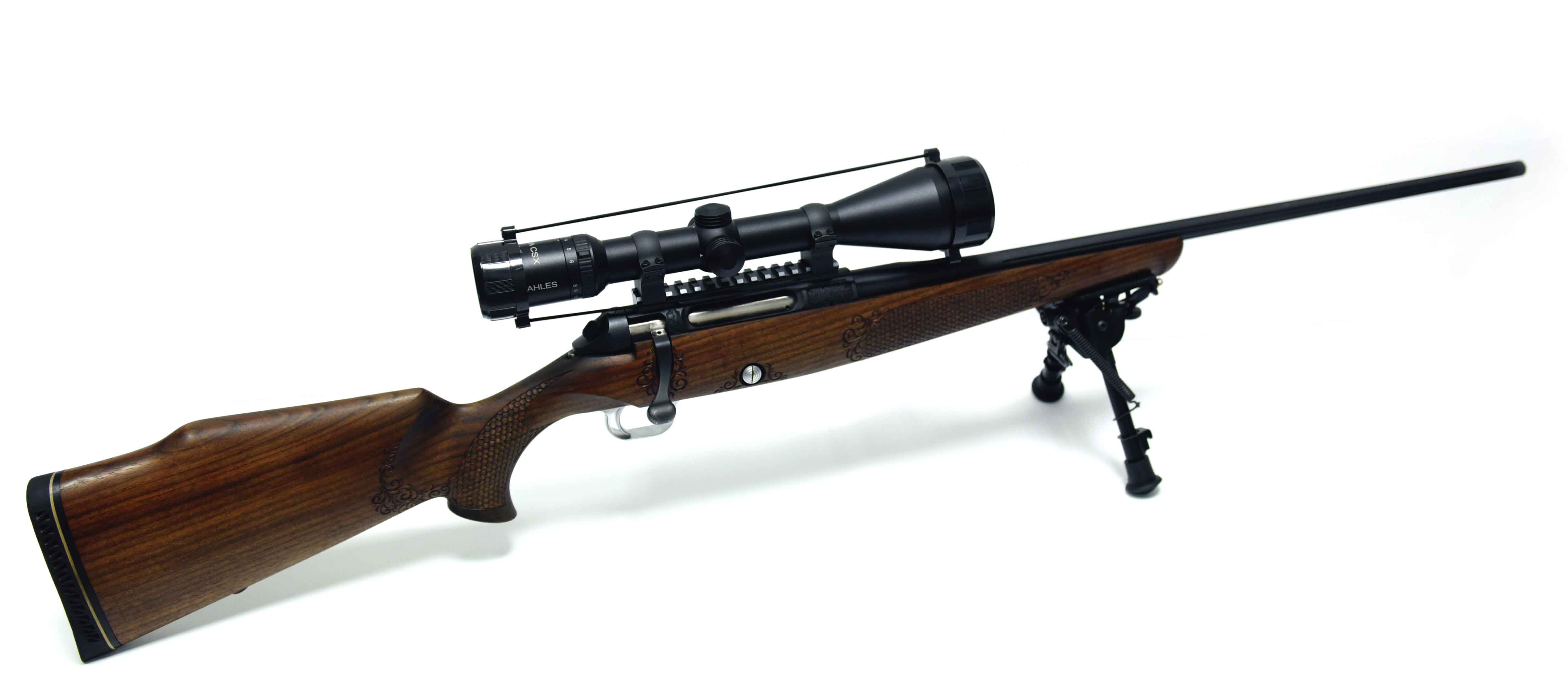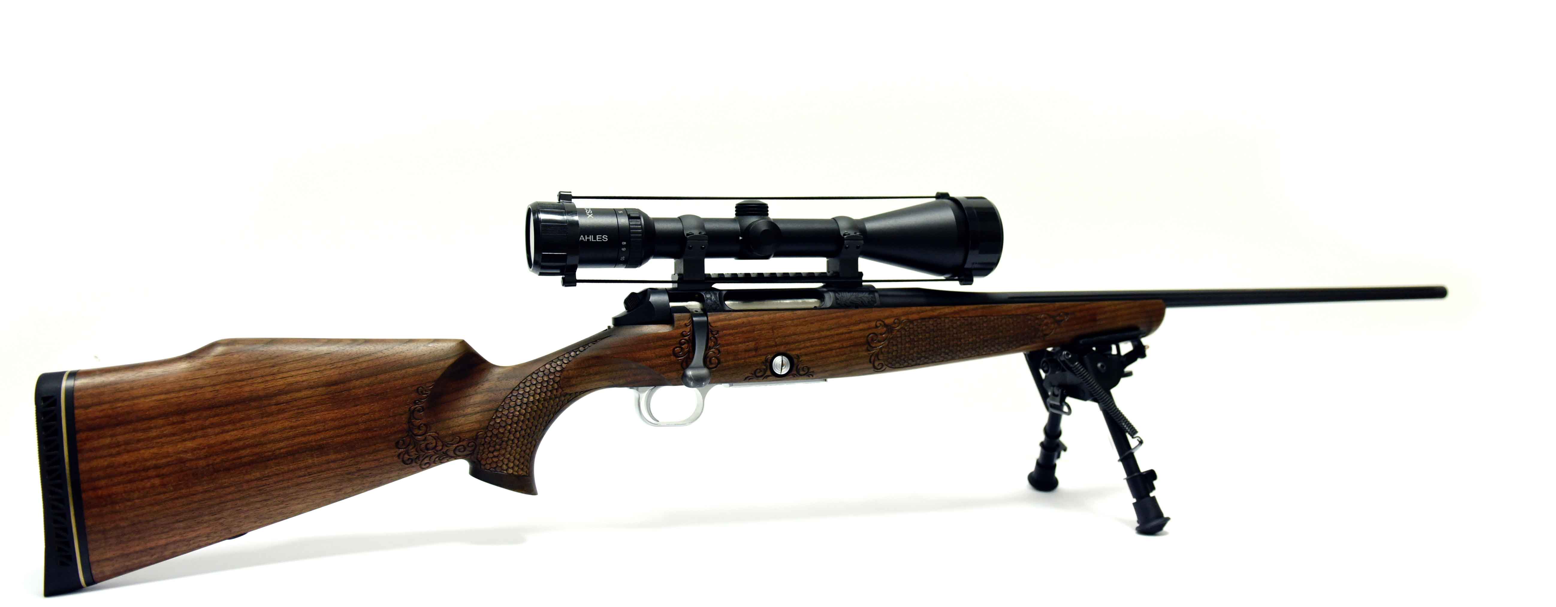 Die Jagdwaffe zeichnet sich unter anderem durch Echenblatt-Gravur und Gewehrkolbenverzierung aus.Kaliber: .234 Win.